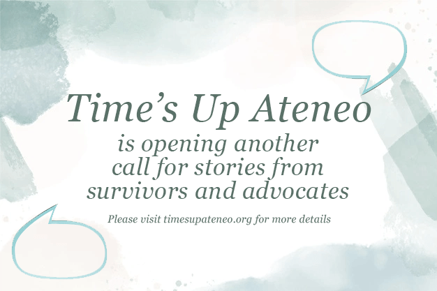Through this year’s call for stories, Time’s Up Ateneo hopes to promote supportive and caring communities for survivors and advocates.